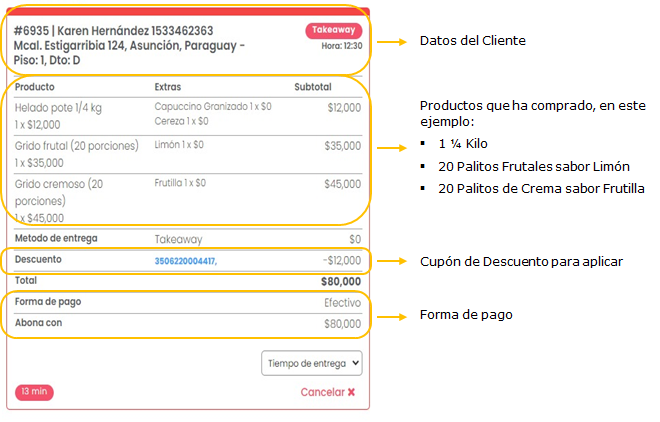 Al recibir un pedido para su Franquicia, observará la siguiente información.