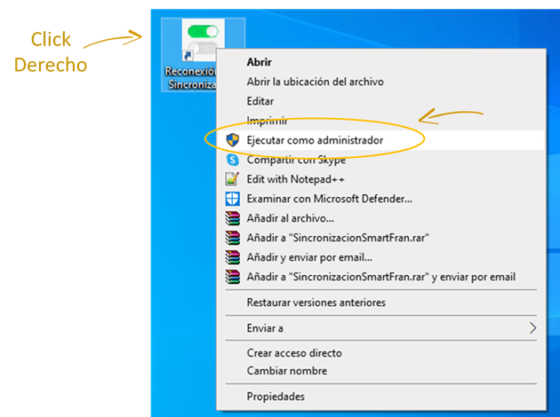 Lo único que tenés que hacer es dirigirte al ícono de Reconexión, hacer clik derecho y seleccionar “Ejecutar como administrador”*,
