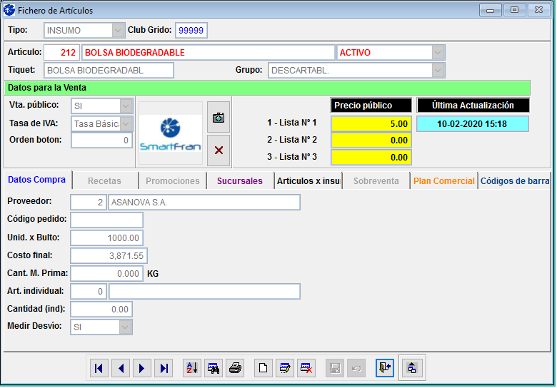Recuerde sincronizar los datos desde SmarFran POS para que las modificaciones realizadas impacten en su punto de ventas.