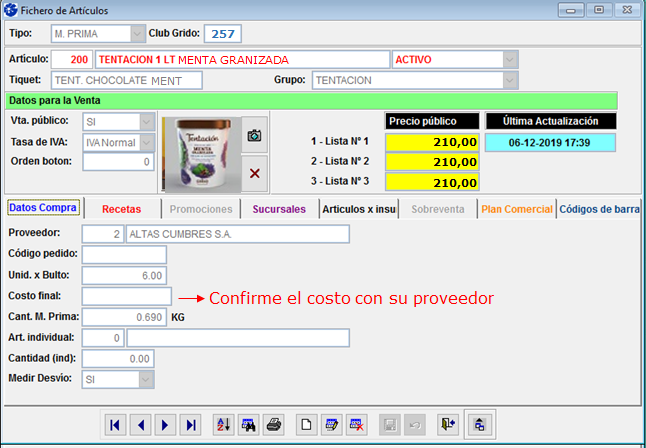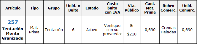 La información debe verse del siguiente modo en su Fichero de Artículos:
