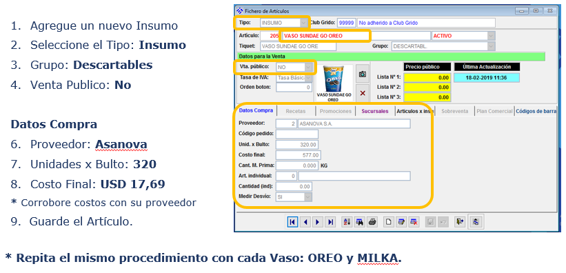 1.1. Creación del Nuevo Insumo: VASO SUNDAE GO OREO / MILKA